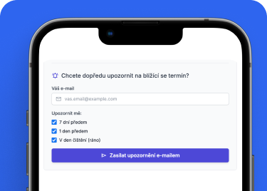 Občané si snadno zjistí termíny čištění a aktivují upozornění. Žádná registrace, žádné složité procesy.