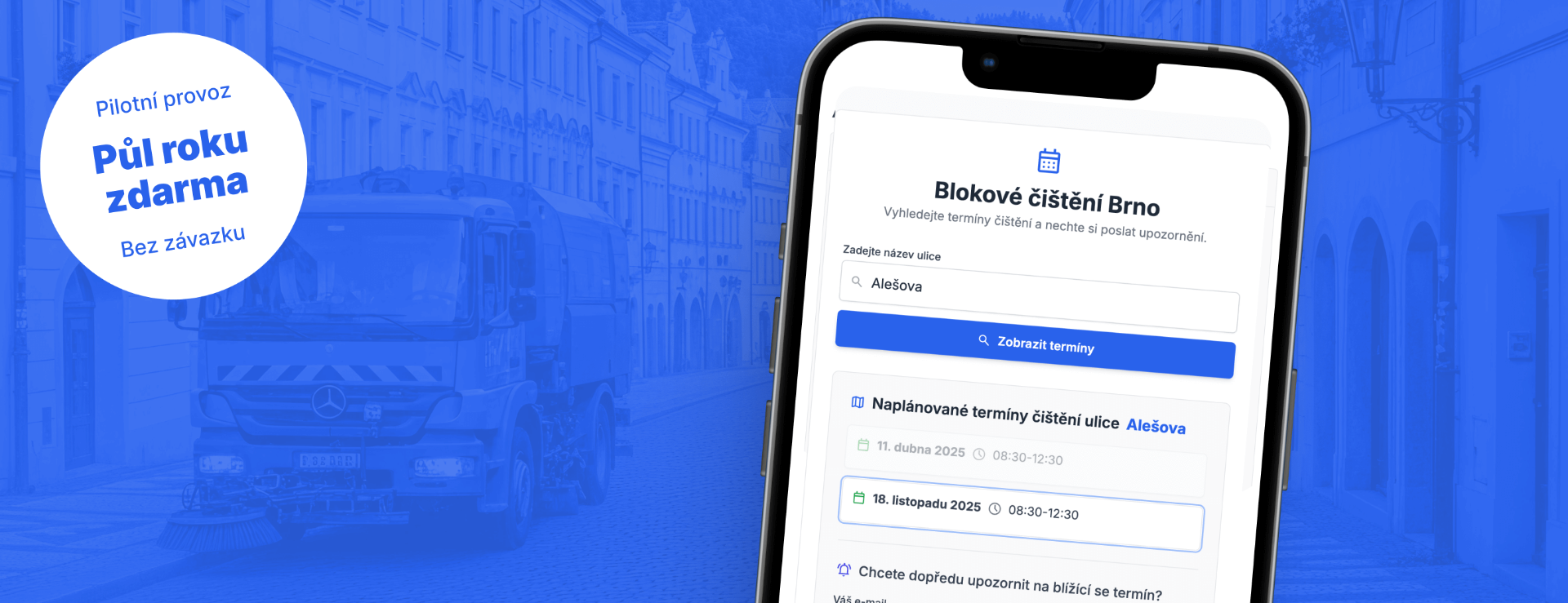 Občané si snadno zjistí termíny čištění ulic a aktivují upozornění e-mailem. Bez nutné registrace a za pár vteřin.